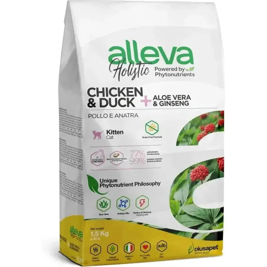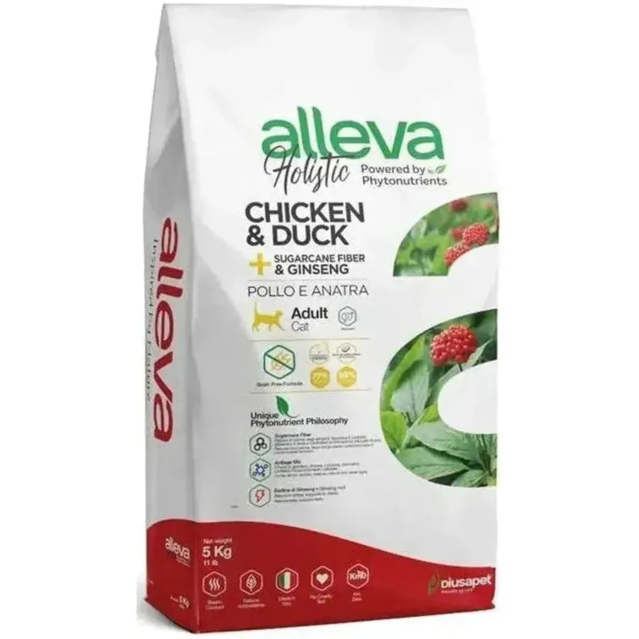 Croquettes sans céréales Alleva Holistic Poulet & Canard + Aloe Vera & Ginseng chat adulte